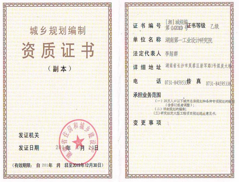 城市規(guī)劃編制資質(zhì)證書