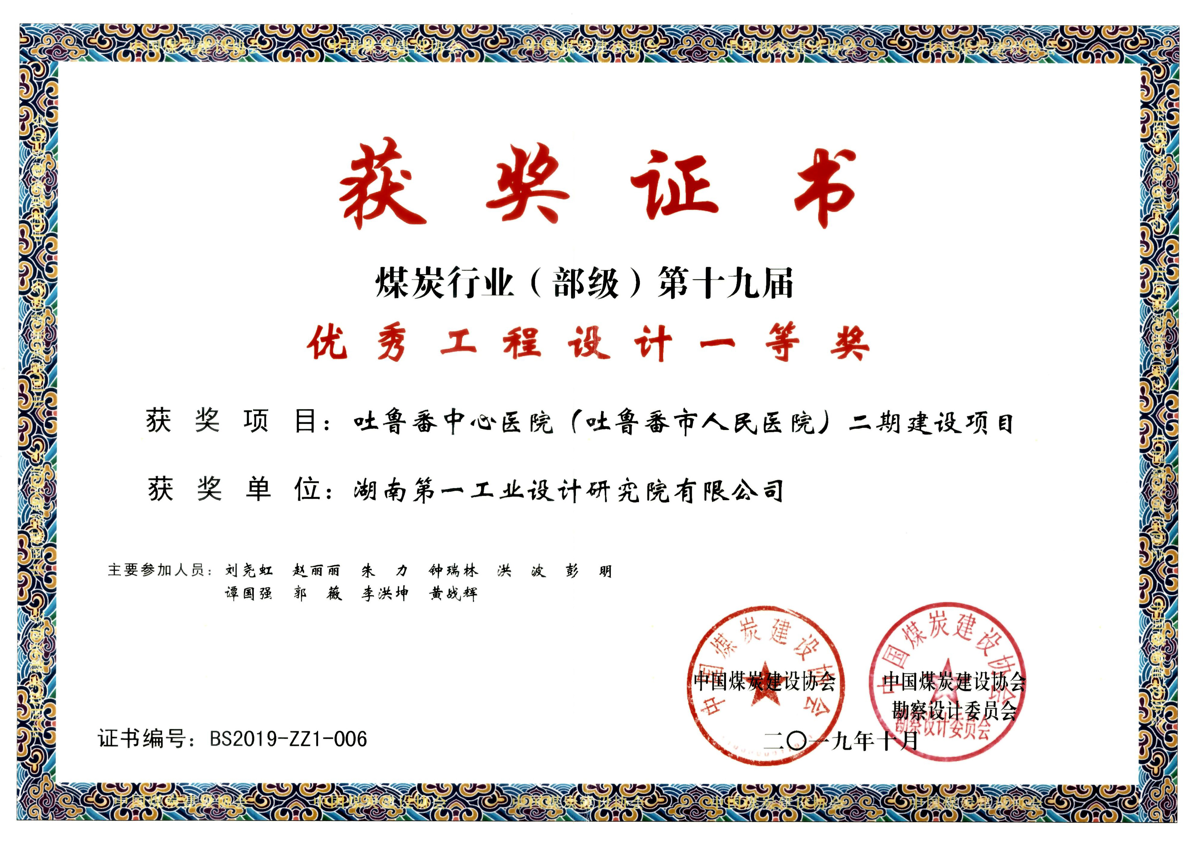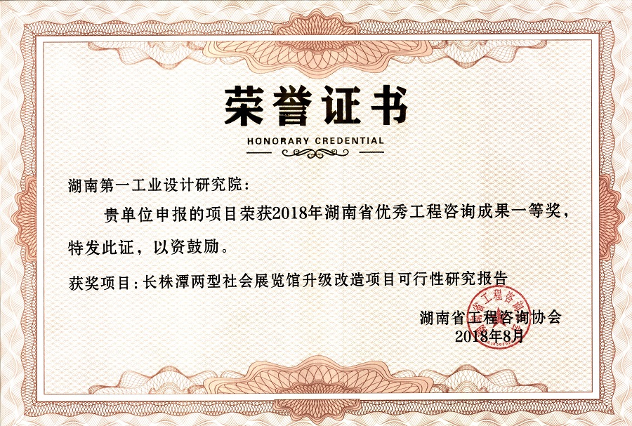 湖南省優(yōu)秀設(shè)計(jì)表?yè)P(yáng)金獎(jiǎng)(1984)